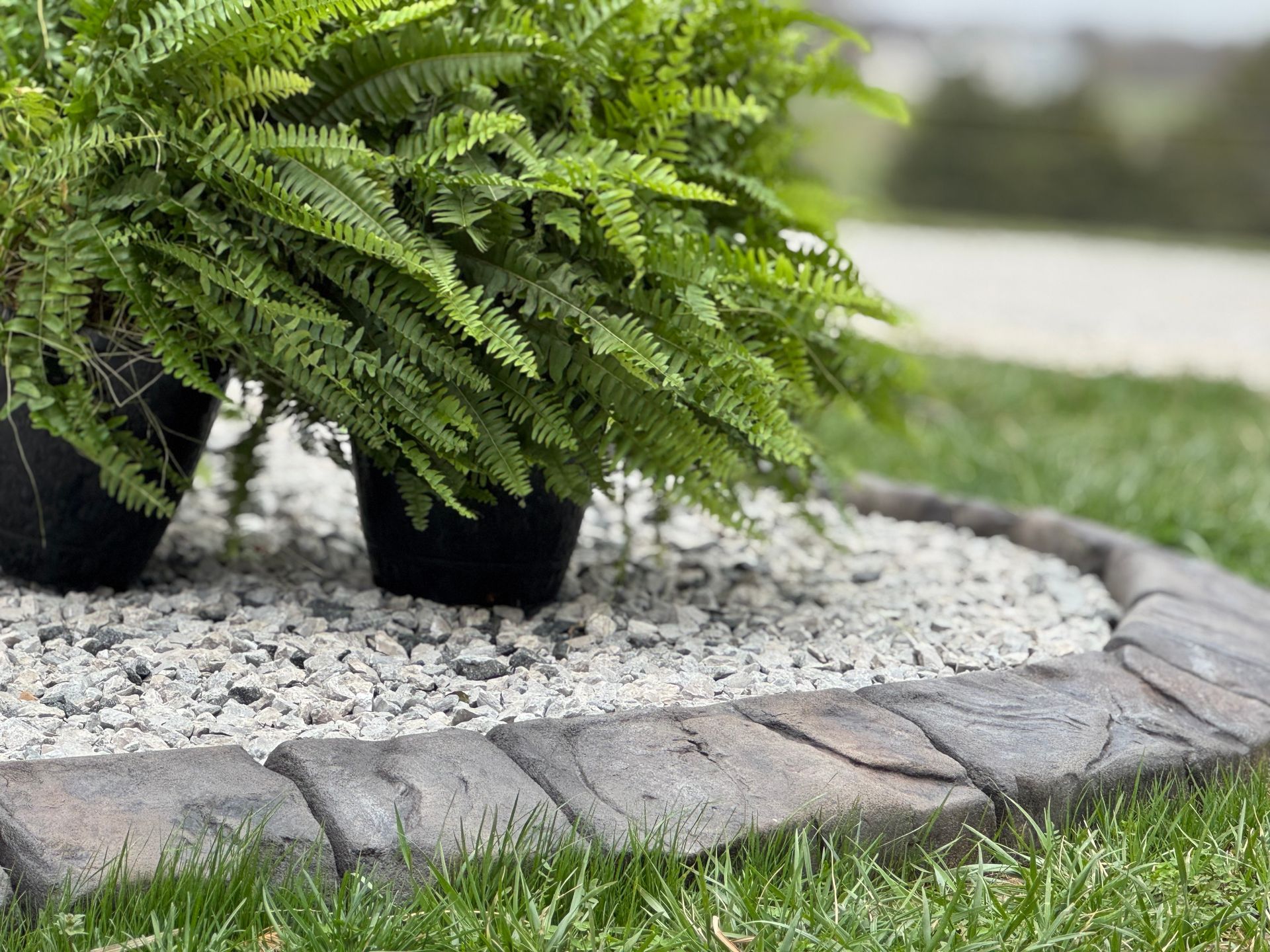 Smooth concrete curbing with rounded edges is safe for bare feet and paws. Set it low enough to avoid trip points but high enough to contain mulch and keep your grass clean. Fill the beds with larger, rounded river rock instead of tiny pea gravel that sticks to shoes and spreads all over the yard. At Step Above Curbing, we customize the height to match your mower deck and your family's use of the outdoor space.